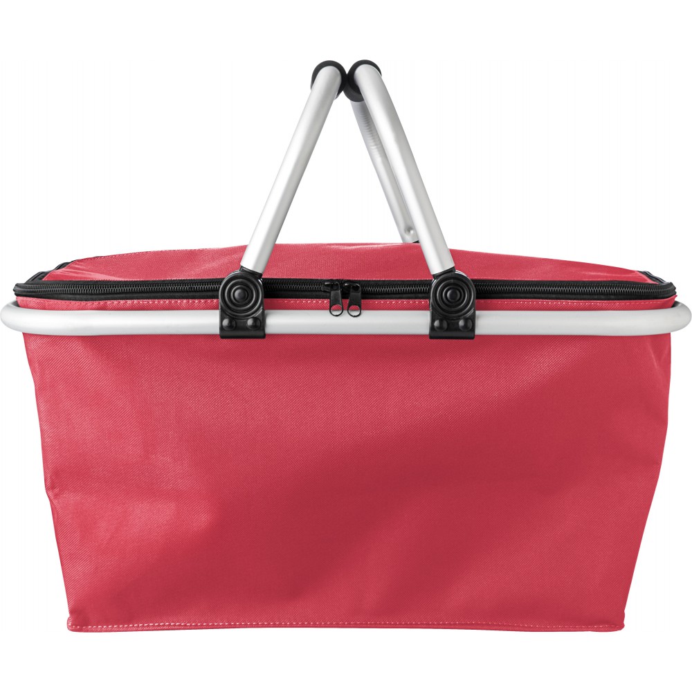 Összehajtható bevásárlókosár alumínium vázzal, hőtartó fóliás béléssel, EVA fogóval, cipzáros záródással. 320 g/m2 oxford anyag.