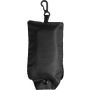 Összecsukható bevásárlótáska övre csatolható tokban. Táska nyitott mérete: 40 x 45 cm, a fül 12.5 cm hosszú. 190T poliészter.