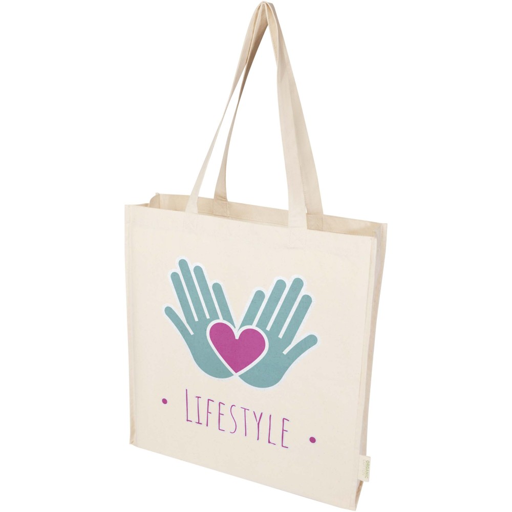 Az Orissa 180 g/m2-es bio hordtáska oldalsó betétével és széles aljával extra tárolóhelyet biztosít, hosszú fogantyúinak köszönhetően pedig kényelmesen hordozható. Öko-Tex tanúsítvánnyal rendelkezik. Teherbírás 5 kg súlyig. Űrtartalom: 14 liter.