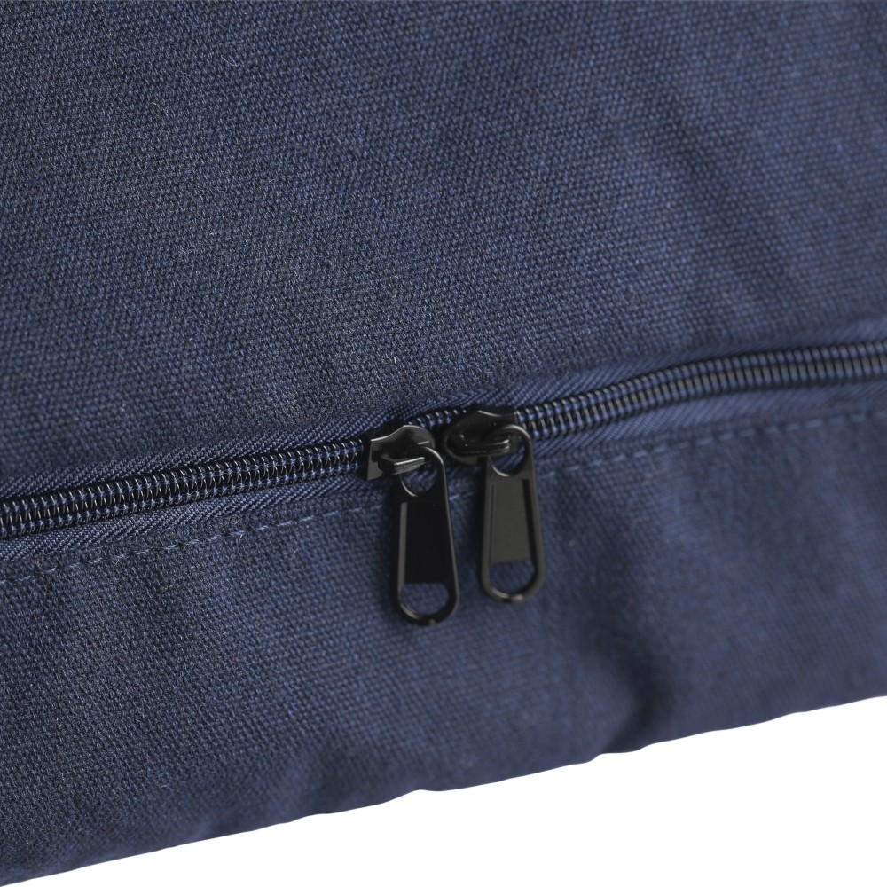 Bevásárlótáska és hátizsák 330 g/m2 újahasznosított policotton anyagból, 210D poliészter béléssel. Egy nagy cipzáras rekesszel a tetején, cipzáras rekesszel az alján, 15"-es laptoptartó résszel, két belső rekesszel és egy külső cipzáras résszel. Hordozófüllel és párnázott, állítható vállpánttal. Űrtartalom: 30 liter, teherbíró képesség: 15 kg. Címkét tartalmaz.