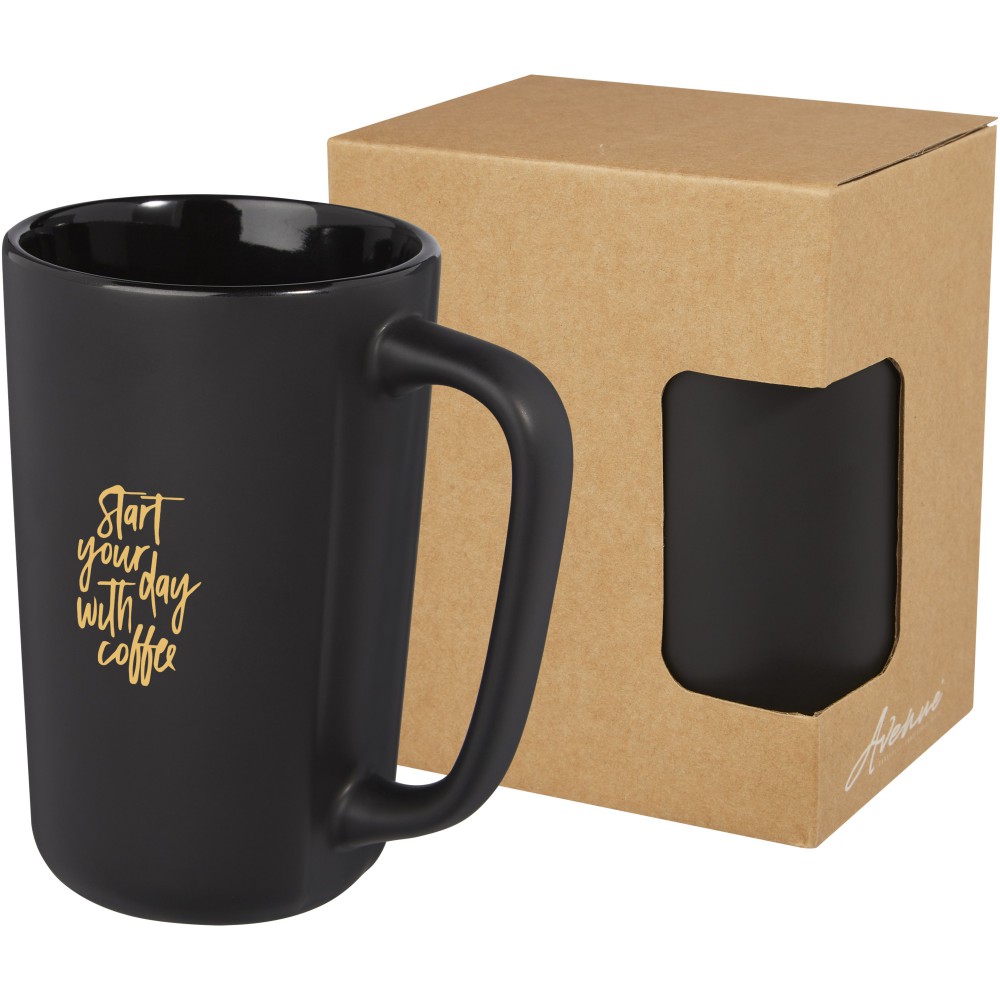 Nagy, modern kerámia bögre matt külsővel. A Perk bögre nagy felülettel rendelkezik, ideális a logózáshoz. Mosogatógépben mosható. Űrtartalma 480 ml. Újrahasznosított karton díszdobozban. Kerámia.