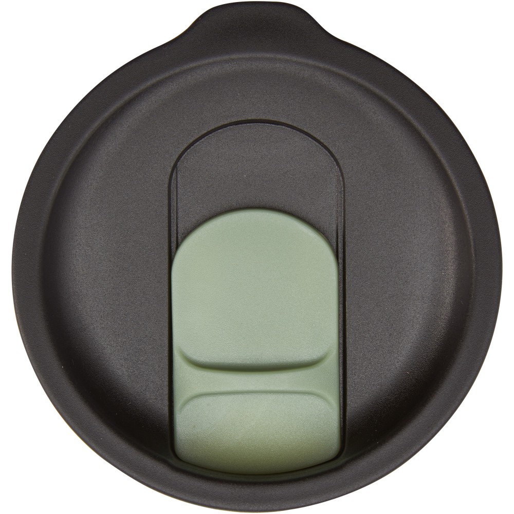 A stílusos Nordia bögre rozsdamentes acél külsővel és fenntartható újrahasznosított PP belsővel készült. A belső fedél, a csúszka és a fül is újrahasznosított PP-ből készül, tanúsított és felelős forrásból. A fedele szivárgásmentes, csúsztatható zárással, így ez a bögre tökéletes italok fogyasztásához útközben. BPA-mentes, a német élelmiszerbiztonsági törvény (LFGB) szerint tesztelt és jóváhagyott, és a REACH előírásai szerint ftaláttartalomra tesztelve. Űrtartalma 400 ml. Kézi mosogatása ajánlott. Újrahasznosítható PP műanyag, rozsdamentes acél.