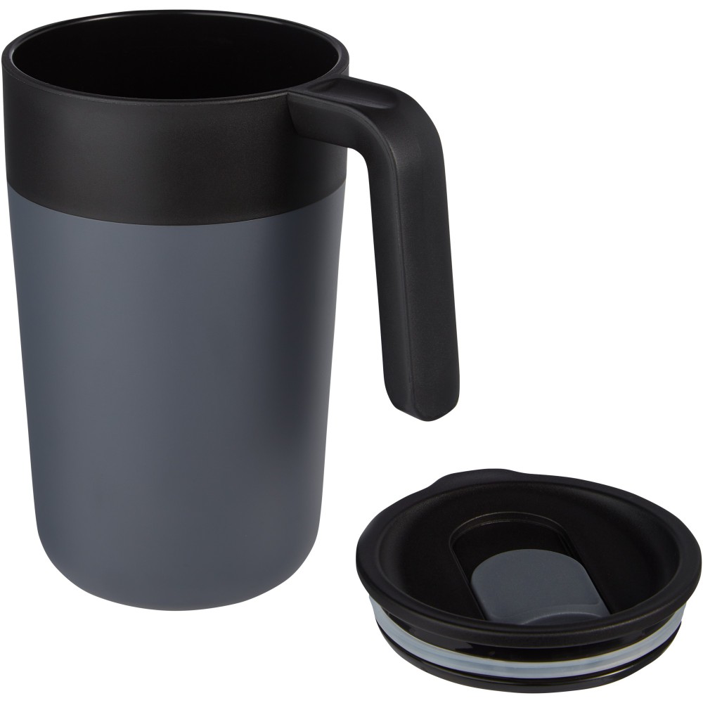 A stílusos Nordia bögre rozsdamentes acél külsővel és fenntartható újrahasznosított PP belsővel készült. A belső fedél, a csúszka és a fül is újrahasznosított PP-ből készül, tanúsított és felelős forrásból. A fedele szivárgásmentes, csúsztatható zárással, így ez a bögre tökéletes italok fogyasztásához útközben. BPA-mentes, a német élelmiszerbiztonsági törvény (LFGB) szerint tesztelt és jóváhagyott, és a REACH előírásai szerint ftaláttartalomra tesztelve. Űrtartalma 400 ml. Kézi mosogatása ajánlott. Újrahasznosítható PP műanyag, rozsdamentes acél.