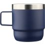 Újrahasznosított rozsdamentes acélból készült bögre (180 ml) duplafalú kialakítással, kerámia belső bevonattal és fogantyúval, a csészén lézergravírozott recycled (újrahasznosított) rozsdamentes acél alapanyagra utaló logó található, darabonként barna kartondobozba csomagolva.