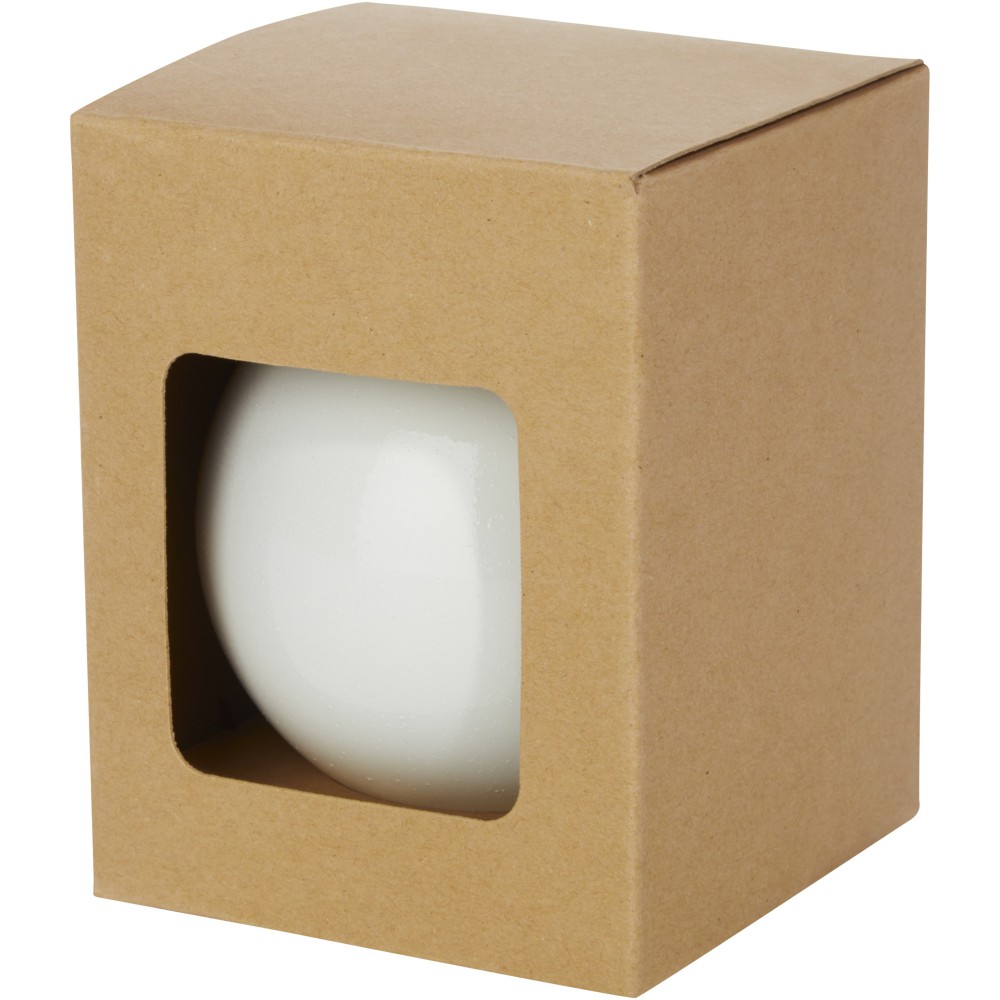 Karácsonyfadísz fényes bevonattal. Csomagolása egyenként ablakos kraft dobozban.