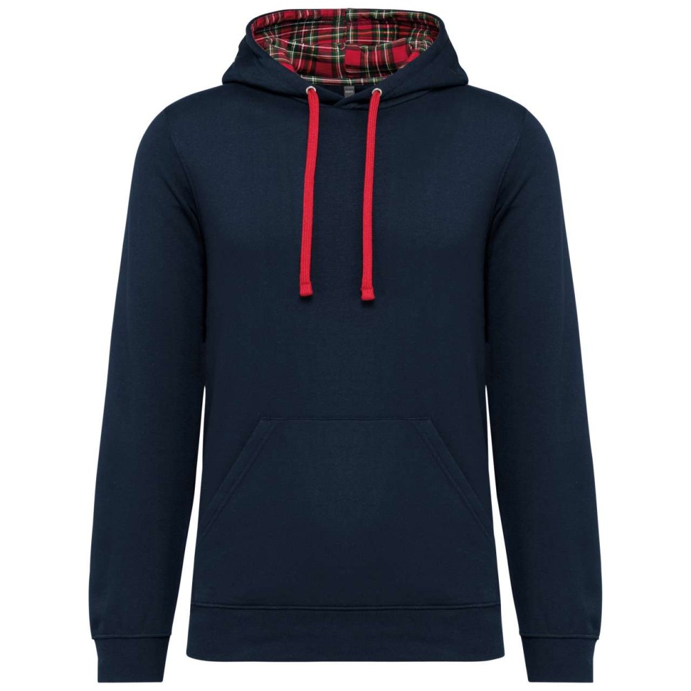 80% fésült pamut/20% poliészter. 3 fonalú pamut. Karcsú szabás. Egyenes ujjak. Kenguru zsebek. Félhold alakú betét a nyakkivágásnál, hogy megkönnyítse a díszítéshez való hozzáférést a nyakkivágás belsejében. 1x1 bordázott mandzsetta és szegély. Tematikusan nyomtatott pamut trikószövetből készült, kontrasztos húzózsinórral bélelt kapucni. Letéphető márkacímke.