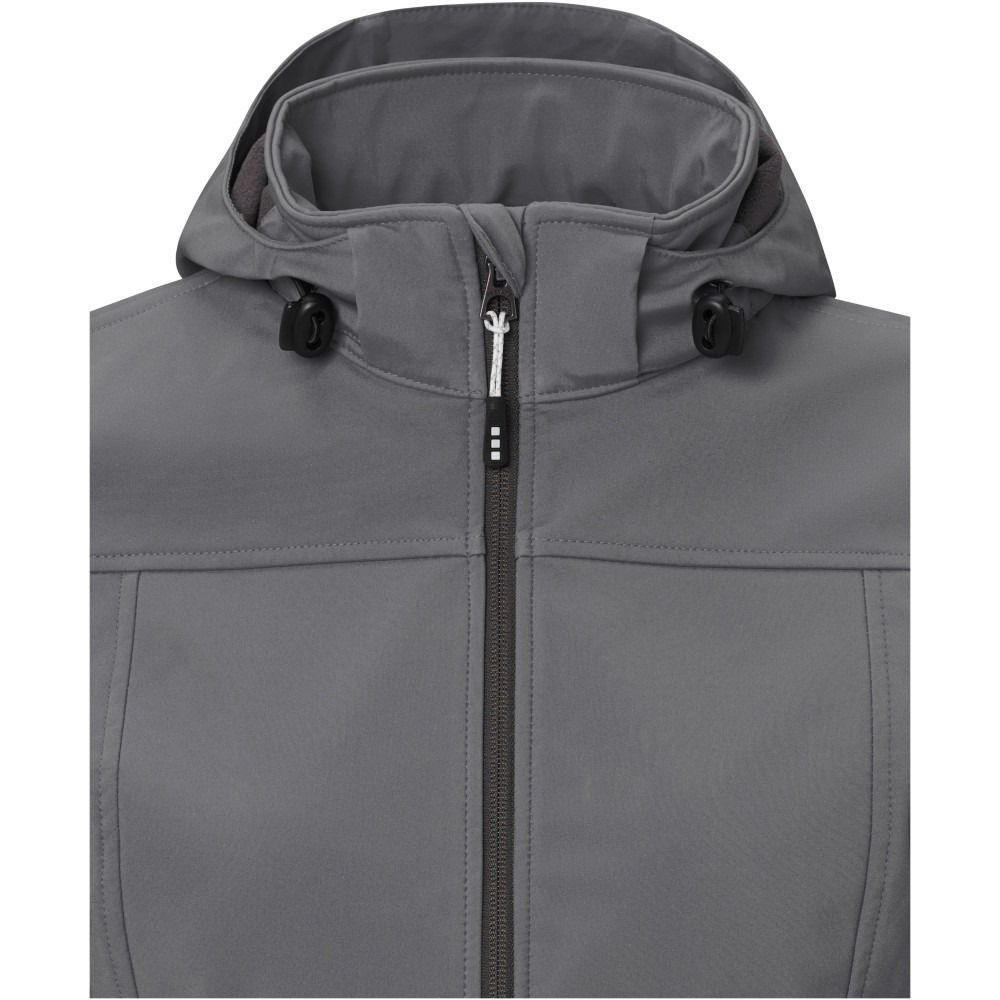 Normál szabásvonal, softshell anyag. Levehető kapucni rugalmas húzózsinórral és megállítógombbal. Fordított állású cipzárok. Tépőzárral állítható kézelő. Hátul fényvisszaverő logónyomat . 5000 mm-ig vízálló. 3000 mm-ig lélegző. 4 irányú sztreccs anyag. Szélálló. Könnyen megfogható cipzárhúzókák (póthúzókák antracit színben). 90% poliészter és 10% elasztán 100% mikropolárral préselve. 300 g/m2.