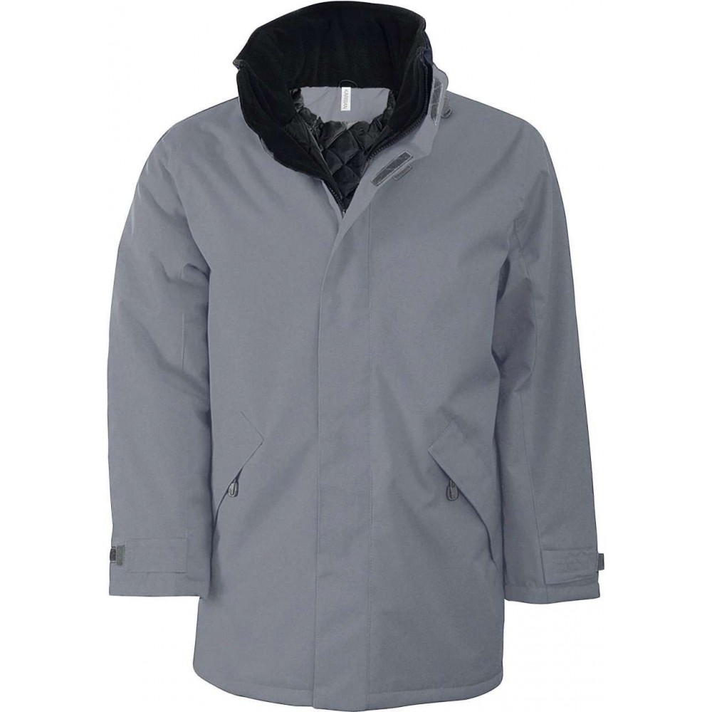 100% poliészter Oxford külső anyag, poliészter töltés és bélés. Viharálló, tépőzáras gallér, rejthető kapucni polár béléssel, nagy, tépőzáras belső zseb, két cipzáras oldalzseb, belül mobiltaró zseb, tépőzárral állítható kézelő, emblémázás számára kialakított bélés. 450 g/m2. XS-3XL. Bizonyos színek 4XL méretig kaphatóak.