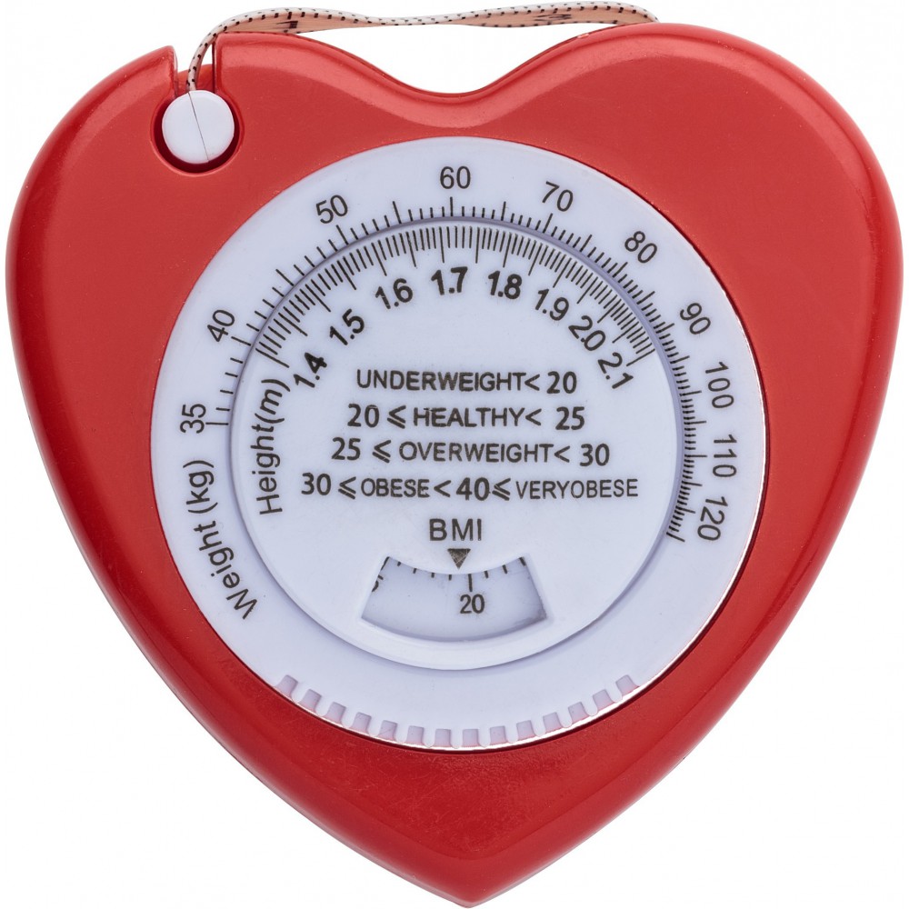 Szív alakú BMI mérőszalag, piros