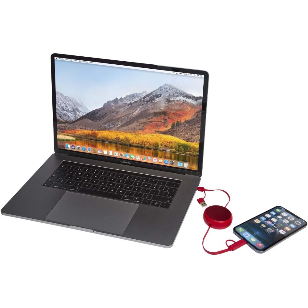Az Alasia 5 az 1-ben visszahúzható adat- és 45W-os gyorstöltő kábel újrahasznosított műanyagból készült, tartós és stílusos újrahasznosított alumínium elemmel, amely fenntarthatóbb és elegáns töltési megoldást kínál. A kábel USB-A és Type-C bemeneti csatlakozókat, valamint egy 3 az 1-ben Type-C és Lightning/Micro USB kombinált kimeneti csatlakozót tartalmaz. Az USB-C?USB-C kapcsolat maximális teljesítménye 45W, az USB-A?USB-C kapcsolaté 24W, míg az összes többi kapcsolat maximális teljesítménye 15W. Kompatibilis a CarPlay és az Android Auto rendszerekkel, és beépített telefontartóval is rendelkezik a további kényelem érdekében. Akár otthon, az irodában vagy útközben használod, az Alasia kábel teljesítményt és stílust garantál. Kábel hossza: 100 cm.