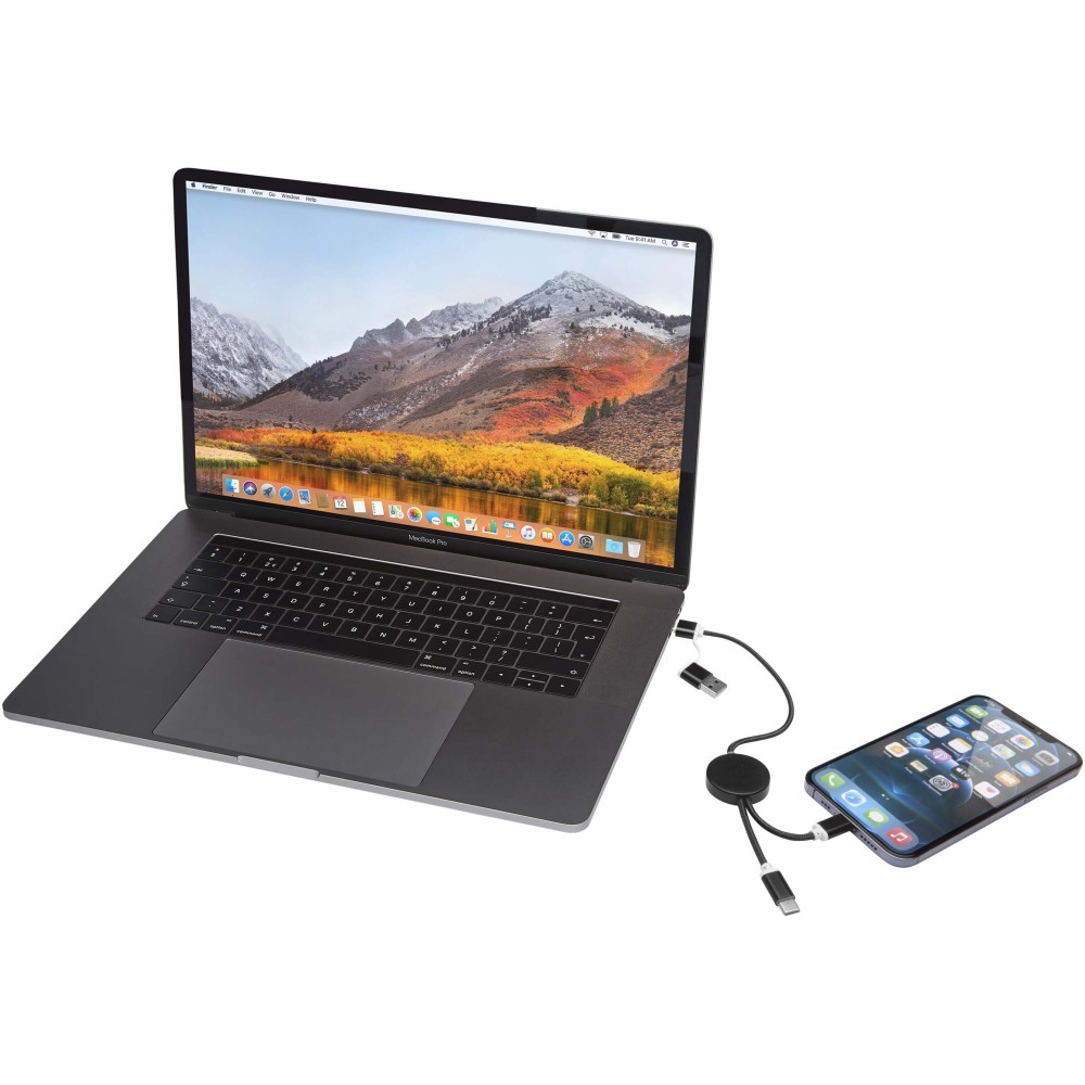 Az Alasia 5 az 1-ben adat- és 27W-os gyorstöltő kábel tartós és elegáns újrahasznosított alumíniumból és műanyagból készült. A kábel USB-A és Type-C bemeneti csatlakozókkal, valamint Type-C és Lightning/Micro USB kombinált kimeneti csatlakozóval rendelkezik. Az USB-A?USB-C kapcsolat maximális teljesítménye 27W, míg az összes többi kapcsolat maximális teljesítménye 15W. Kompatibilis a CarPlay és az Android Auto rendszerekkel. Akár otthon, az irodában vagy útközben használod, az Alasia kábel teljesítményt és stílust garantál. Kábel hossza: 30 cm.