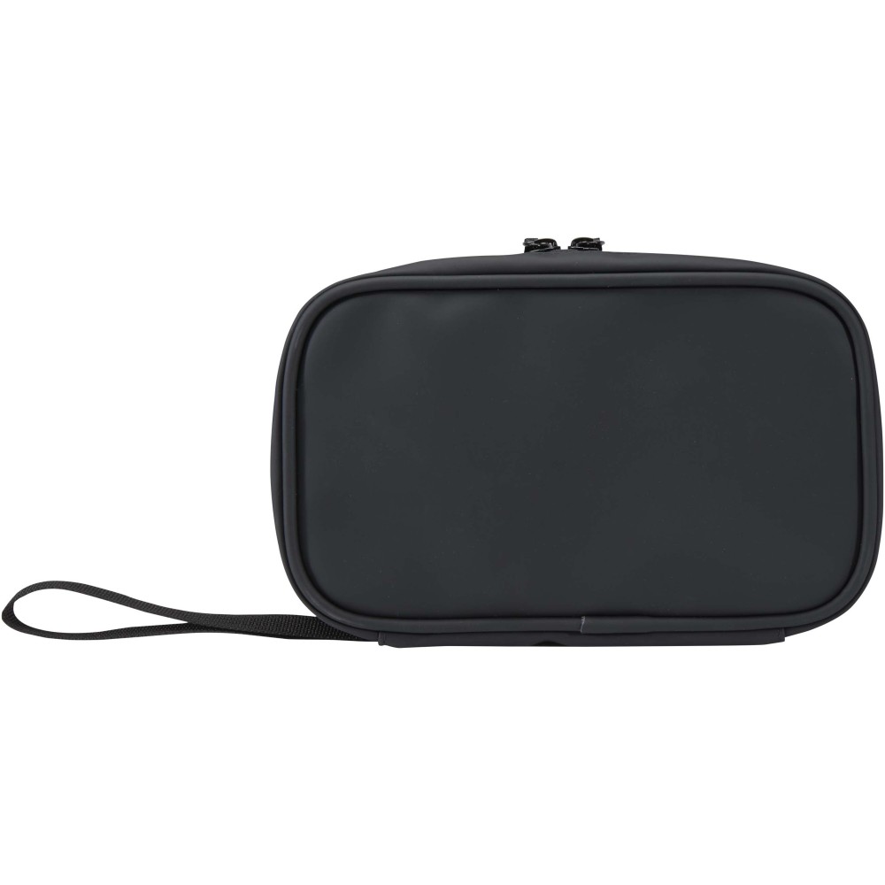 Ez az 1 literes technikai rendszerező táska GRS tanúsítvánnyal rendelkező, újrahasznosított PU-műbőrből készült, színben harmonizáló RPET béléssel, kifejezetten utazók, távmunkában dolgozók és a technikai kiegészítők kedvelői számára tervezve. A kompakt méretnek köszönhetően könnyen szállítható hátizsákban vagy kézipoggyászban, cipzáras főrekesze pedig olyan praktikus rendszerező funkciókat tartalmaz, mint a rugalmas tolltartó pánt, két hálós zseb a fülhallgatók és apró kiegészítők számára, egy megerősített elválasztó, valamint több rugalmas pánt a kábelek, USB-meghajtók és töltők biztonságos rögzítéséhez. A külső részen egy tépőzáras elülső zseb található a gyors hozzáférés érdekében, a kényelmes hordozást pedig egy hevederes fül segíti. A vízlepergető bevonattal ellátott termék hatékony védelmet nyújt az alapvető eszközök számára minden helyzetben.