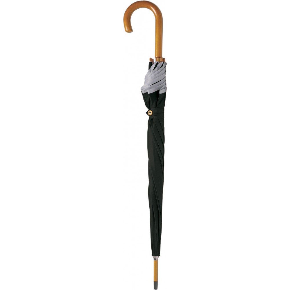 Automata esernyő fényvisszaverő szegéllyel, fa vázzal, hajlított fa nyéllel, 190T poliészter.