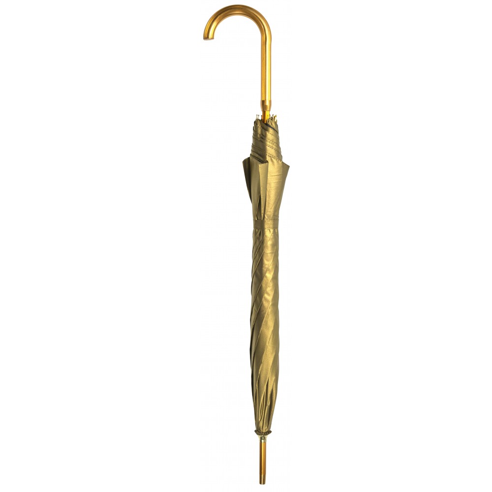 Automata esernyő. 8 aranyozott panellel, selymes belső felülettel, aranyozott alumínium kerettel és hajlított nyéllel. Nylon.