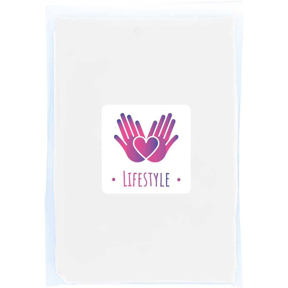 A Maya eldobható esőponcsó 100%-ban újrahasznosított műanyagból készült. Ez az átlátszó, kapucnis poncsó ideális, ha egy szabadtéri fesztiválon vagy bármilyen más szabadtéri rendezvényen elkapja az eső. Nyomtatásra alkalmas tasakkal szállítjuk. Méret: 90 x 120 cm.