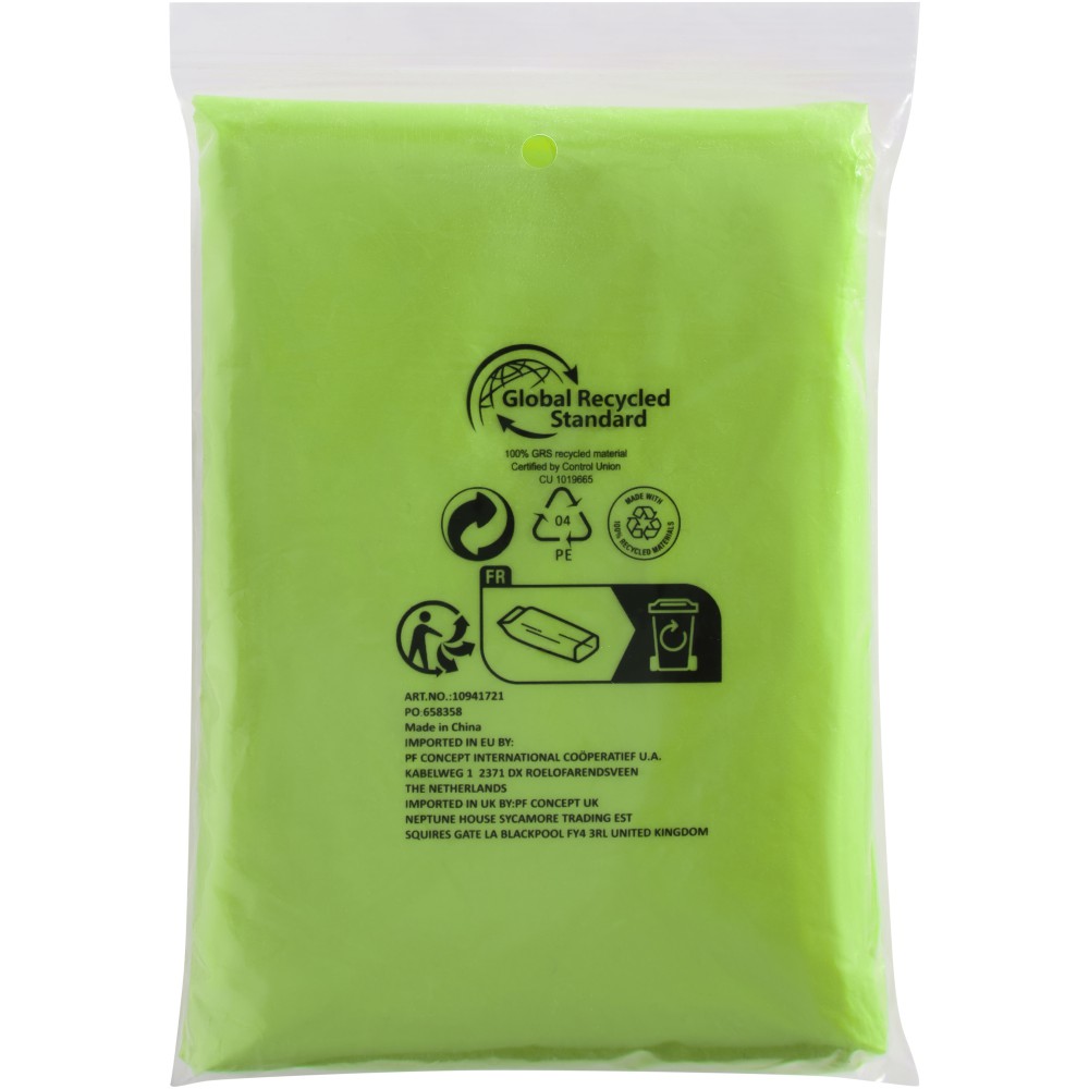 A Maya eldobható esőponcsó 100%-ban újrahasznosított műanyagból készült. Ez az átlátszó, kapucnis poncsó ideális, ha egy szabadtéri fesztiválon vagy bármilyen más szabadtéri rendezvényen elkapja az eső. Nyomtatásra alkalmas tasakkal szállítjuk. Méret: 90 x 120 cm.