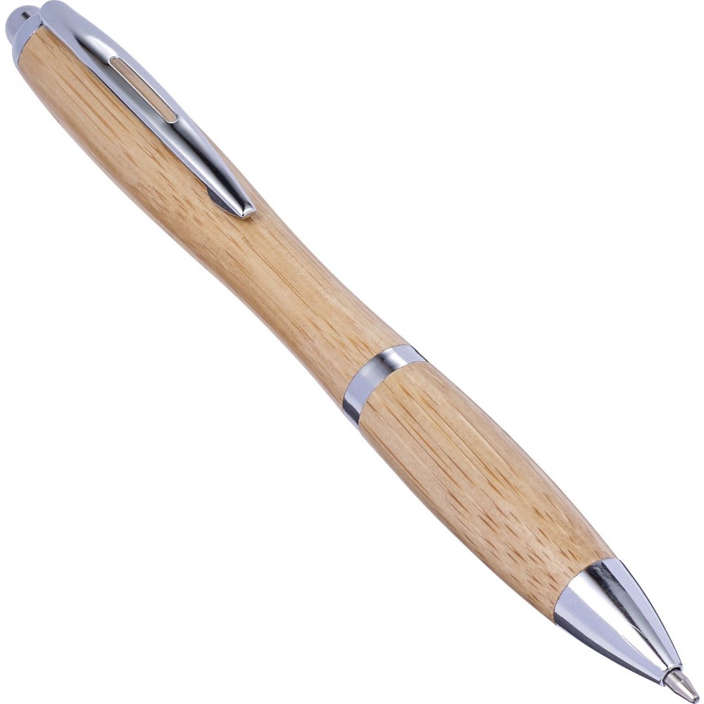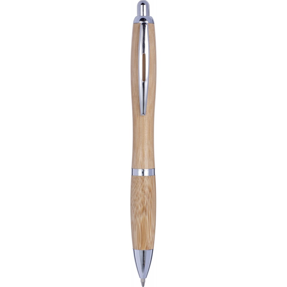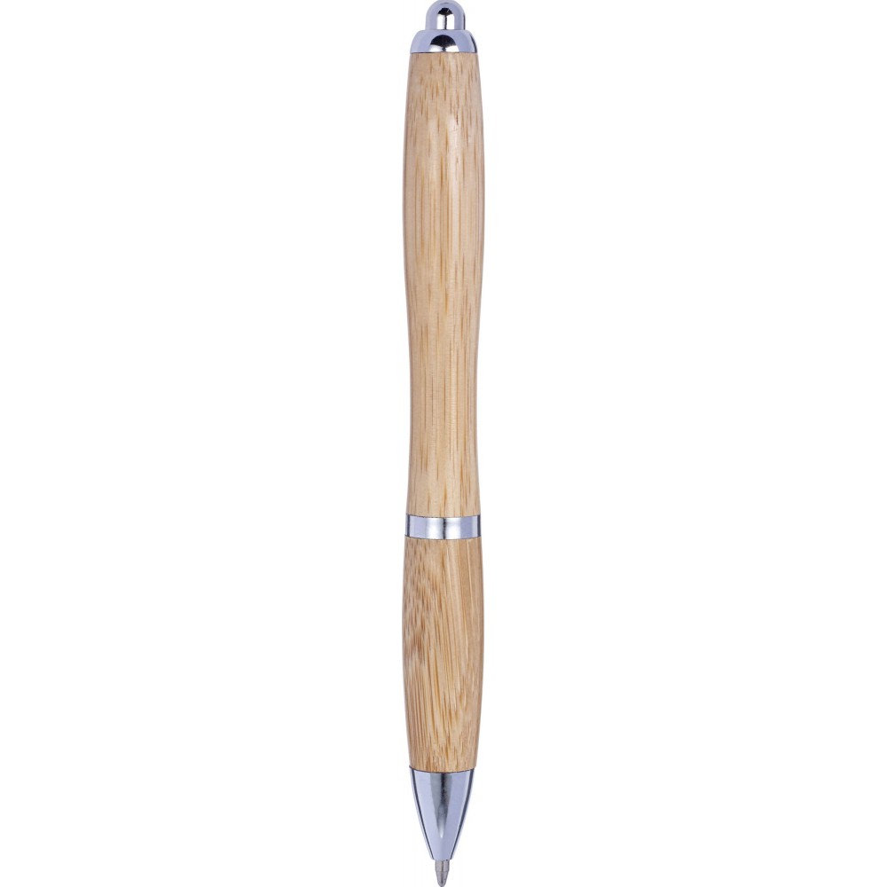 Golyóstoll króm színű kiegészítőkkel, fekete tollbetéttel. Bambusz.