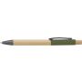 Bambusz golyóstoll alumínium kiegészítőkkel, kék tollbetéttel. Grafit színű hegy és klipsz, bambusz nyomógomb.