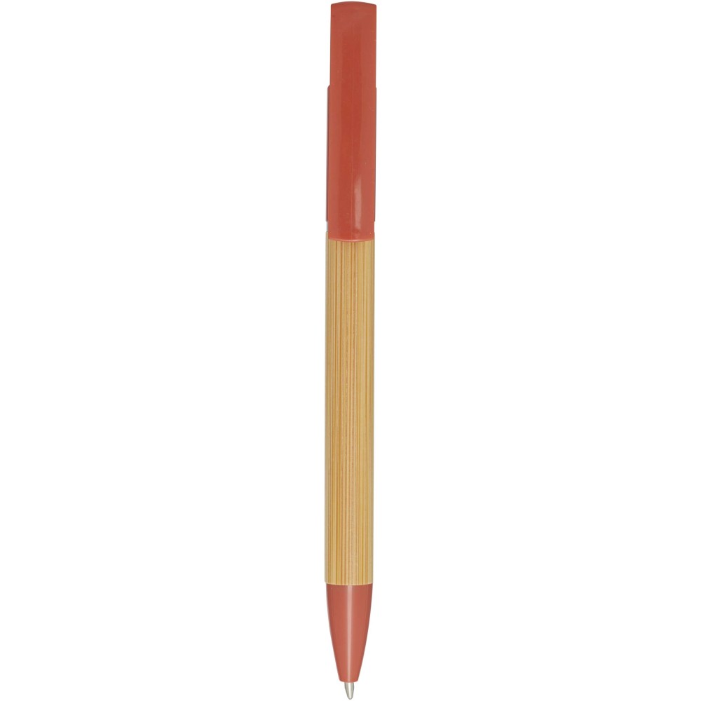 Bambusz golyóstoll, amely telefontartóként is funkcionál. A gomb és a középső gyűrű újrahasznosított műanyagból, a hegy rézből, a tollteste pedig felelősen beszerzett bambuszból készült. Kék tollbetéttel. Írási hossz: 1000 méter. Tollhegy mérete: 1,0 mm.