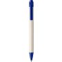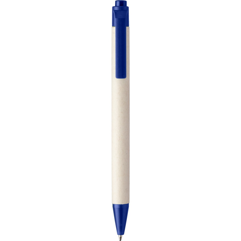 Újrahasznosított tejeskartonból készült golyóstoll újrahasznosított ABS műanyag részekkel. Újrahasznosított ABS logó és újrahasznosított tejeskarton logó jelzi a felhasznált anyagok milyenségét. Kék tollbetéttel.
