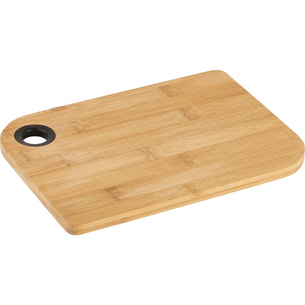 Bambusz vágódeszka szilikongyűrűvel ellátott fogóval. Bambusz, szilikon.