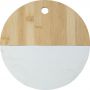 Tálalódeszka a hüvelykujj számára kialakított lyukkal. Anyaga bambusz és kő, márvány mintázattal.