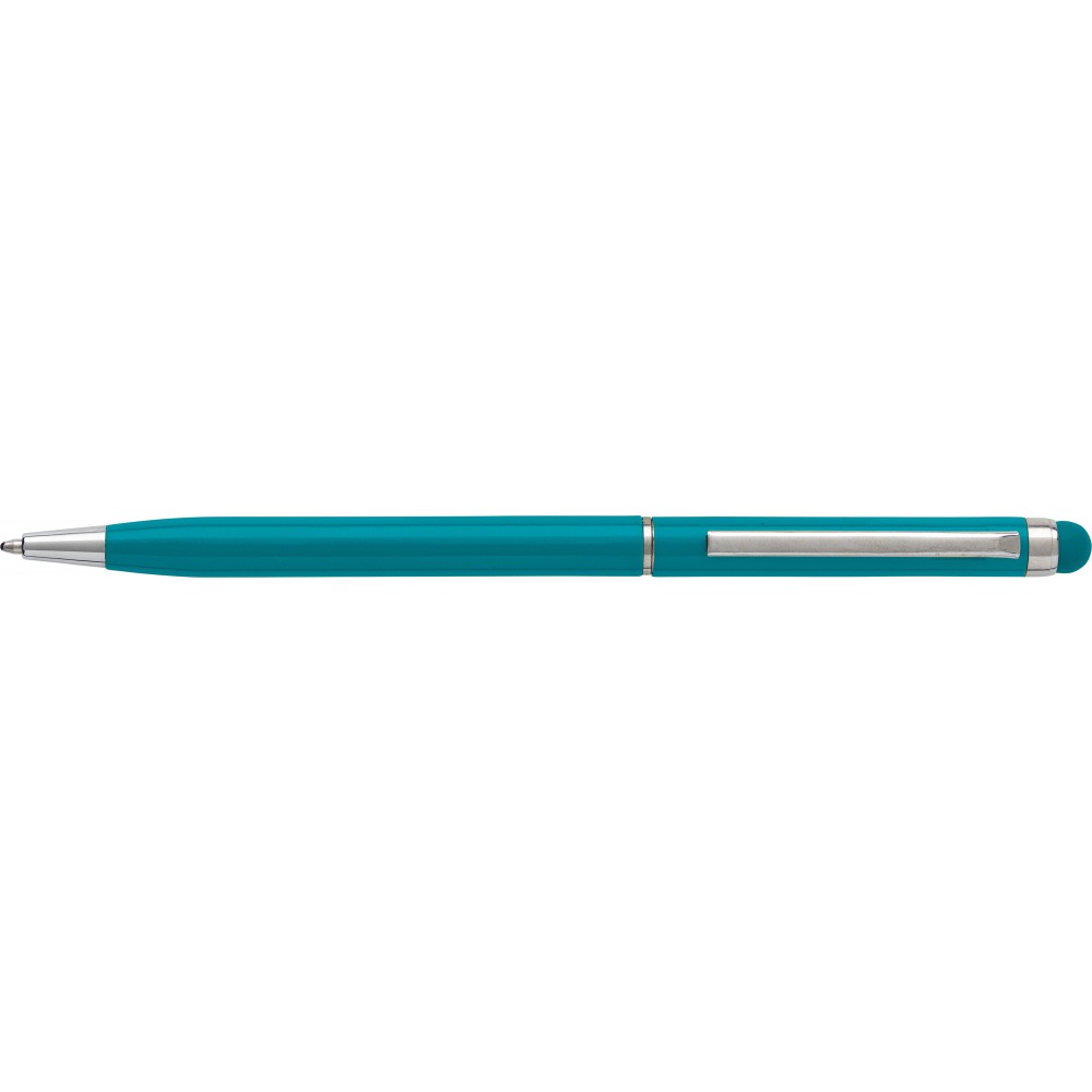 Alumínium golyóstoll érintővel, kék tollbetéttel, türkiz