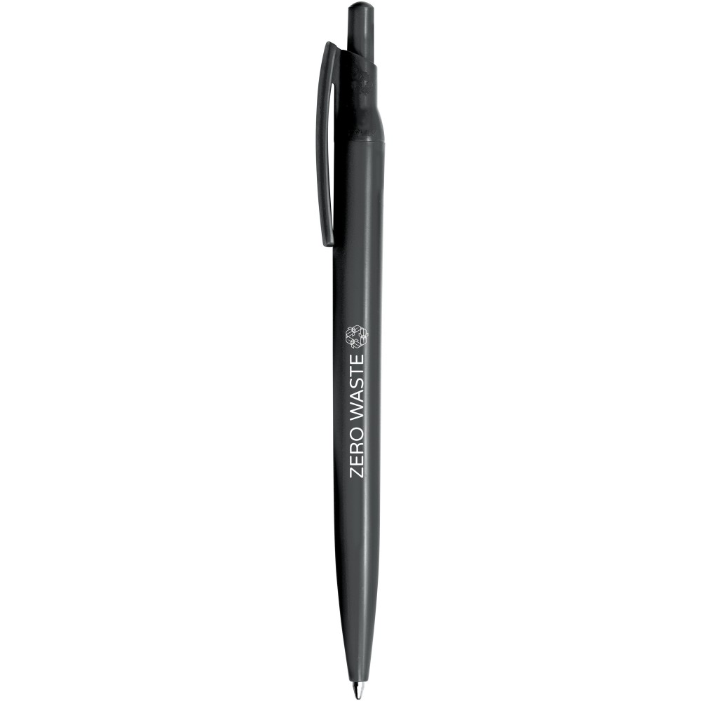 Nyomógombos golyóstoll újrahasznosított PET anyagból, tanúsítvánnyal. Egy palackból egy golyóstoll gyártható. Tartalmaz egy európai X20 cserélhető fekete tollbetétet, íráshossza 2000 méter. Olaszországban készült. Újrahasznosított PET műanyag.