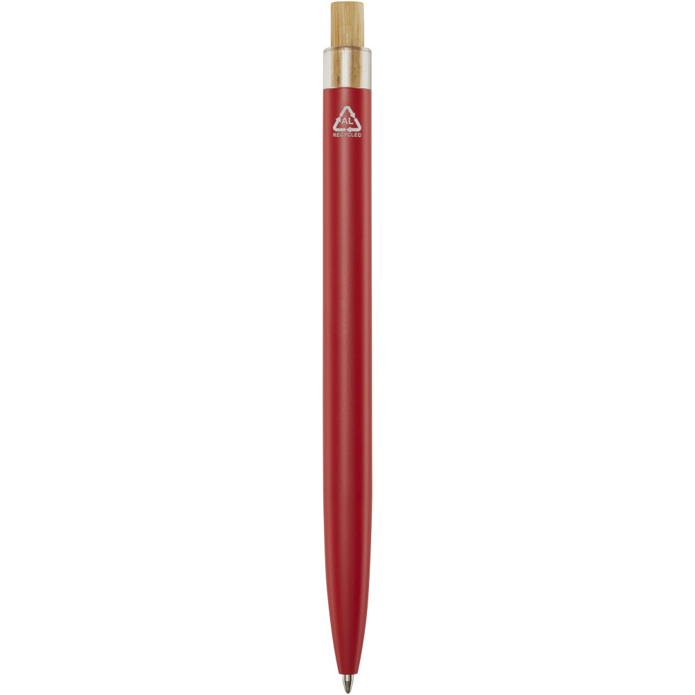 A Nooshin golyóstoll újrahasznosított alumíniumból készül, ami kevesebb energiát igényel, mint az alumínium nyersanyagból történő előállítása. Emellett csökkenti a hulladéklerakókba kerülő hulladék mennyiségét és hozzájárul a természeti erőforrások megőrzéséhez, amelynek célja az üvegházhatású gázok kibocsátásának csökkentése. A nyomógomb bambuszból készült. Tollbetét színe: fekete. Íráshossz: 800 méter. Tollhegy mérete: 1,00 mm.