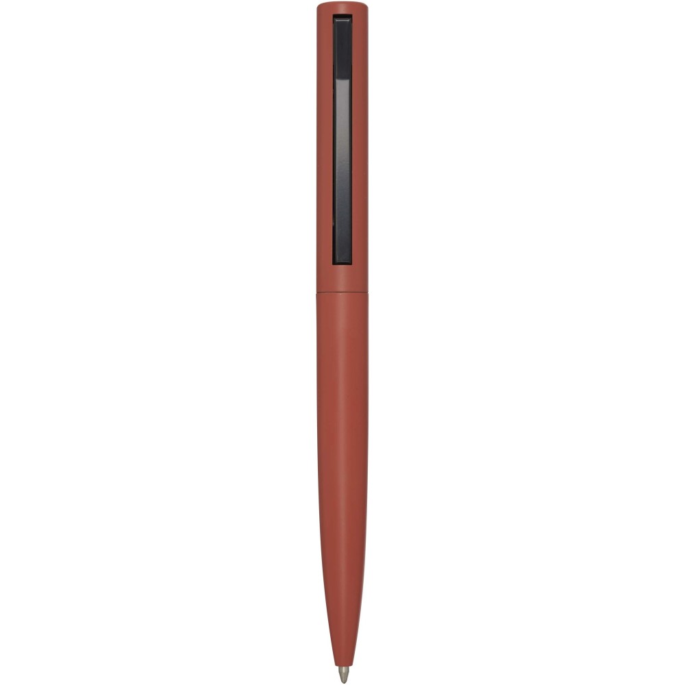 Golyóstoll, melynek felső teste újrahasznosított műanyagból, alsó része pedig újrahasznosított alumíniumból készült. A klipsz vasból készült. Kék tollbetéttel. Írási hossz: 1000 méter. Hegyméret: 1,0 mm.