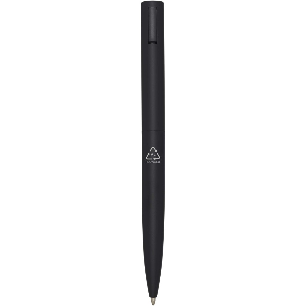 Golyóstoll, melynek felső teste újrahasznosított műanyagból, alsó része pedig újrahasznosított alumíniumból készült. A klipsz vasból készült. Kék tollbetéttel. Írási hossz: 1000 méter. Hegyméret: 1,0 mm.