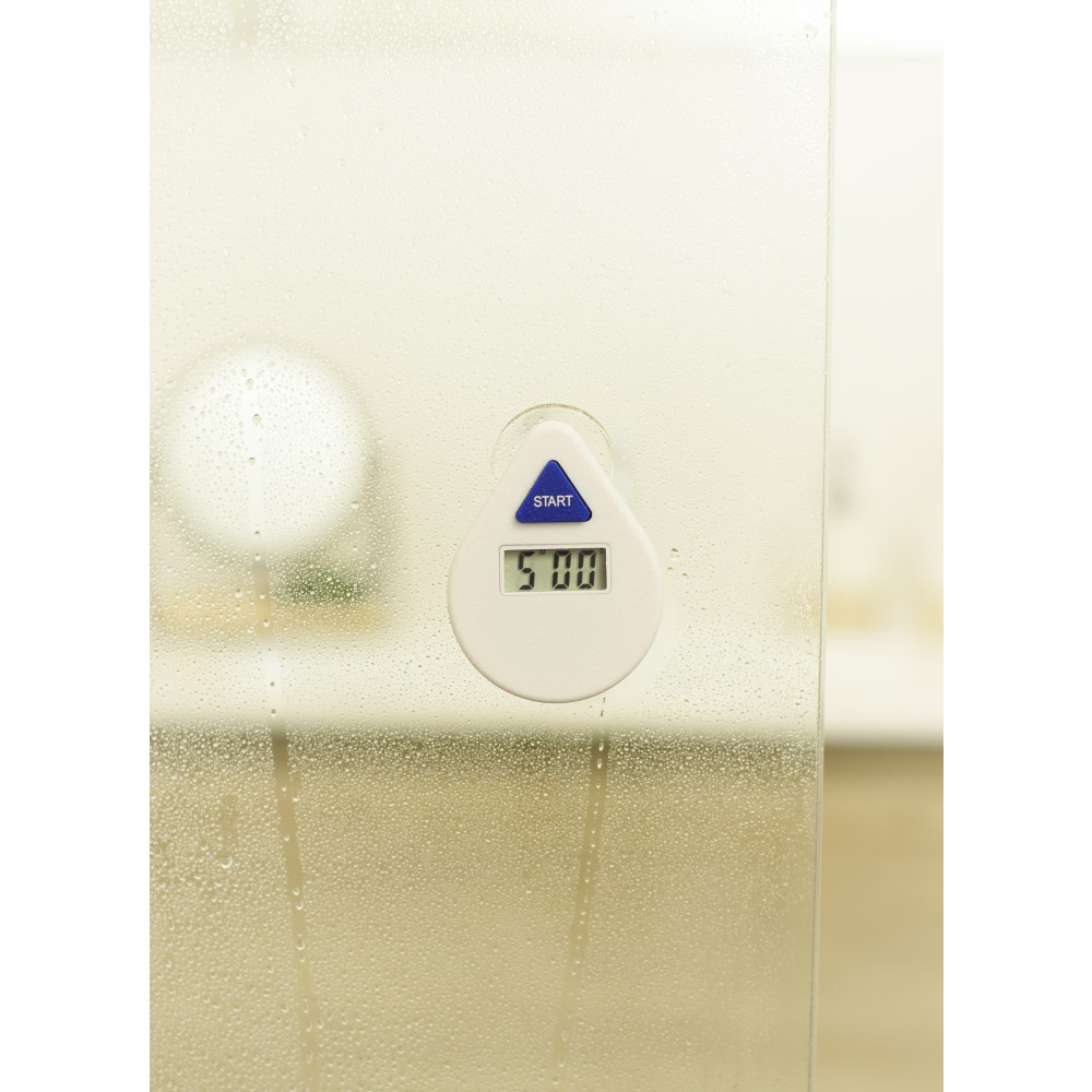 Digitális zuhanyidő-mérő tapadókoronggal és nyomógombbal az elülső oldalon. ABS műanyag.