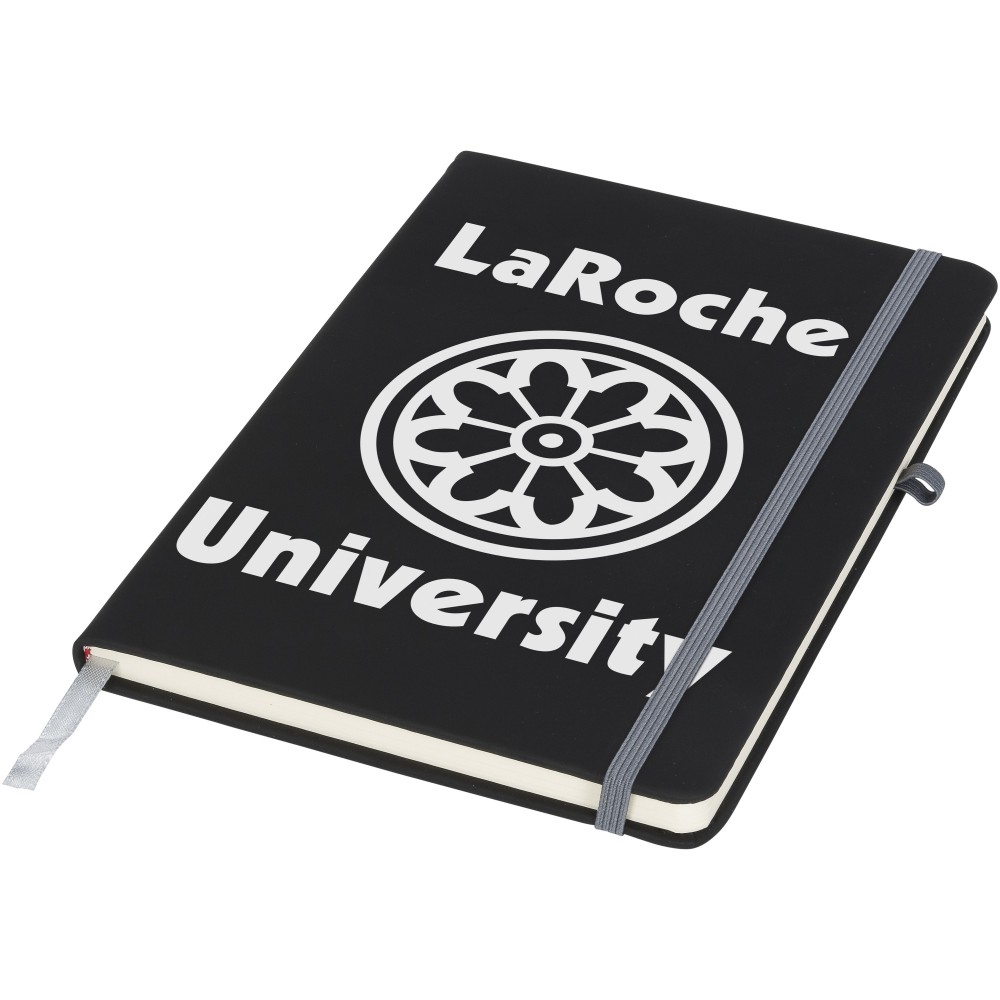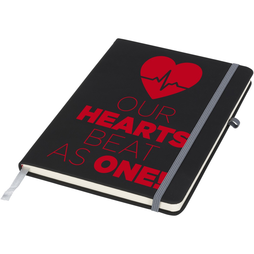 Puha felületű füzet színes gumipánttal, könyvjelzővel és tullhurokkal. 96 krémszínű vonalas lapot tartalmaz.