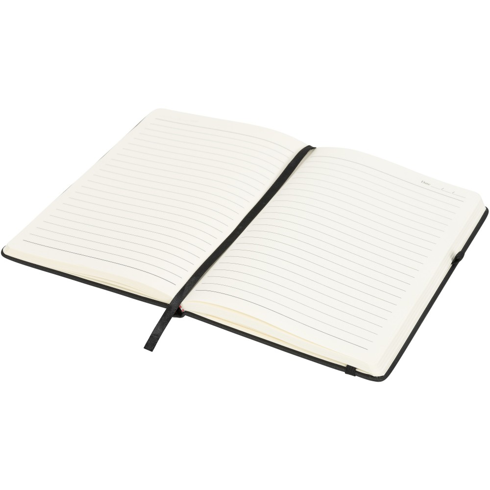 Színes füzet gumipánttal, könyvjelzővel, tollhurokkal. A hátsó borítóban tárolózseb. 128 krémszínű, vonalas lapot tartalmaz.