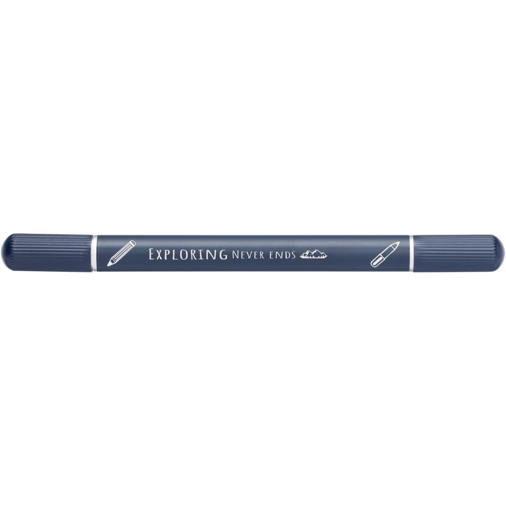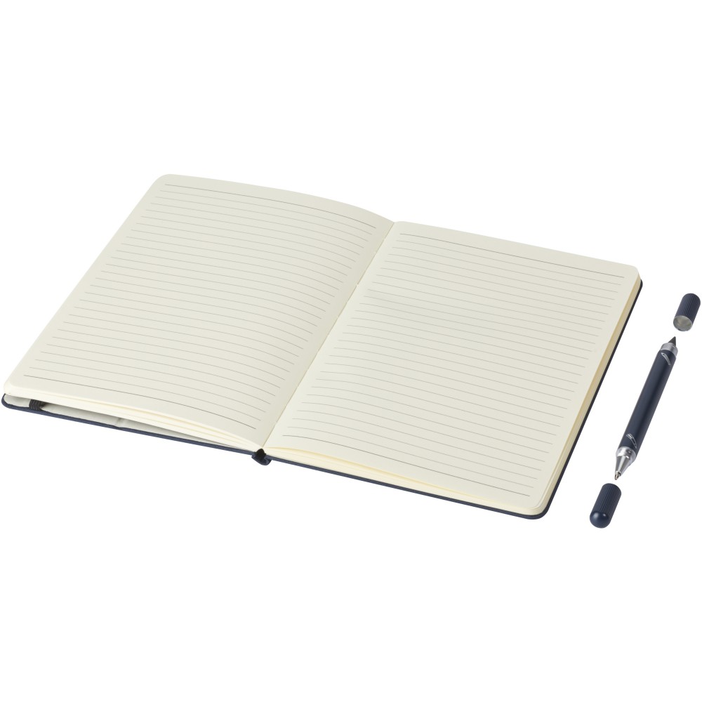 Az RCS tanúsítvánnyal rendelkező Skribi toll- és jegyzetfüzetkészlet részben újrahasznosított poliészterből készül, így fenntartható választás, mivel segít csökkenteni az új nyersanyag felhasználását. Kék tintával ellátott golyóstollat és 80 krémszínű, vonalas lapot tartalmaz, amelyek 80 g/m2 súlyú, fenntartható forrásból származó, újrahasznosított papírból készültek. A toll írási hossza 1000 méter.