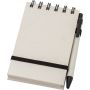 Újrahasznosított tejesdobozból készült A6-os jegyzetfüzet, 70 lappal, gumiszalaggal és tollhurokkal. A toll kék tollbetéttel érkezik. 70%-ban újrahasznosított tejeskartonból és 30%-ban újrahasznosított (sima) papírból készült.