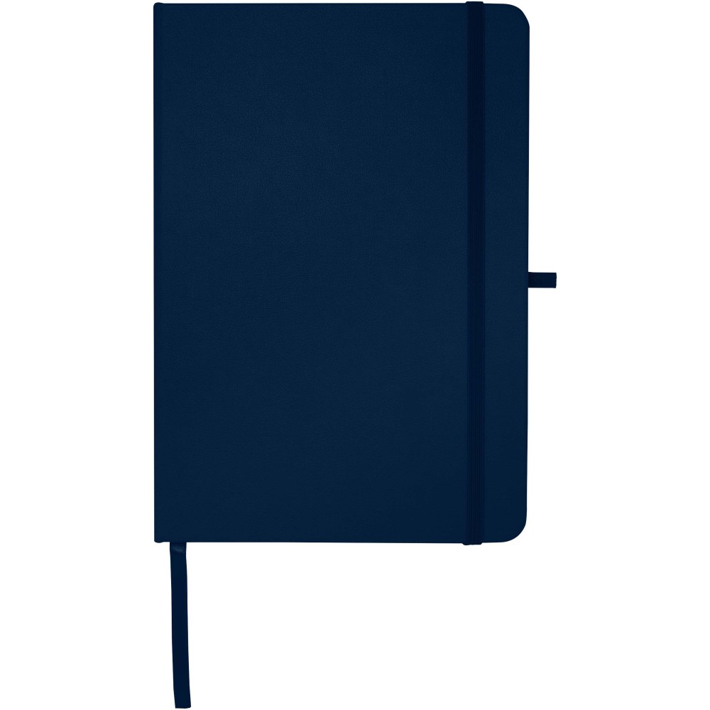 A Teak A5 méretű, újrahasznosított karton keménytáblás jegyzetfüzet lekerekített sarkokkal nemcsak irodai alapdarab, hanem kiváló lehetőség a márka népszerűsítésére is. A jegyzetfüzet 96 darab 70 g/m2-es vonalas lapot tartalmaz és puha tapintású borítóval rendelkezik. Beépített tolltartó hurokkal, rugalmas zárópánttal és könyvjelzővel van ellátva.