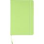 A5-ös méretű jegyzetfüzet rPET PU anyagból készült kemény borítóval, 80 vonalas lappal (70g/m2), színben illeszkedő gumipánttal és könyvjelző szalaggal. Az újrahasznosított anyagra utaló dombornyomott logóval a füzet hátoldalán.