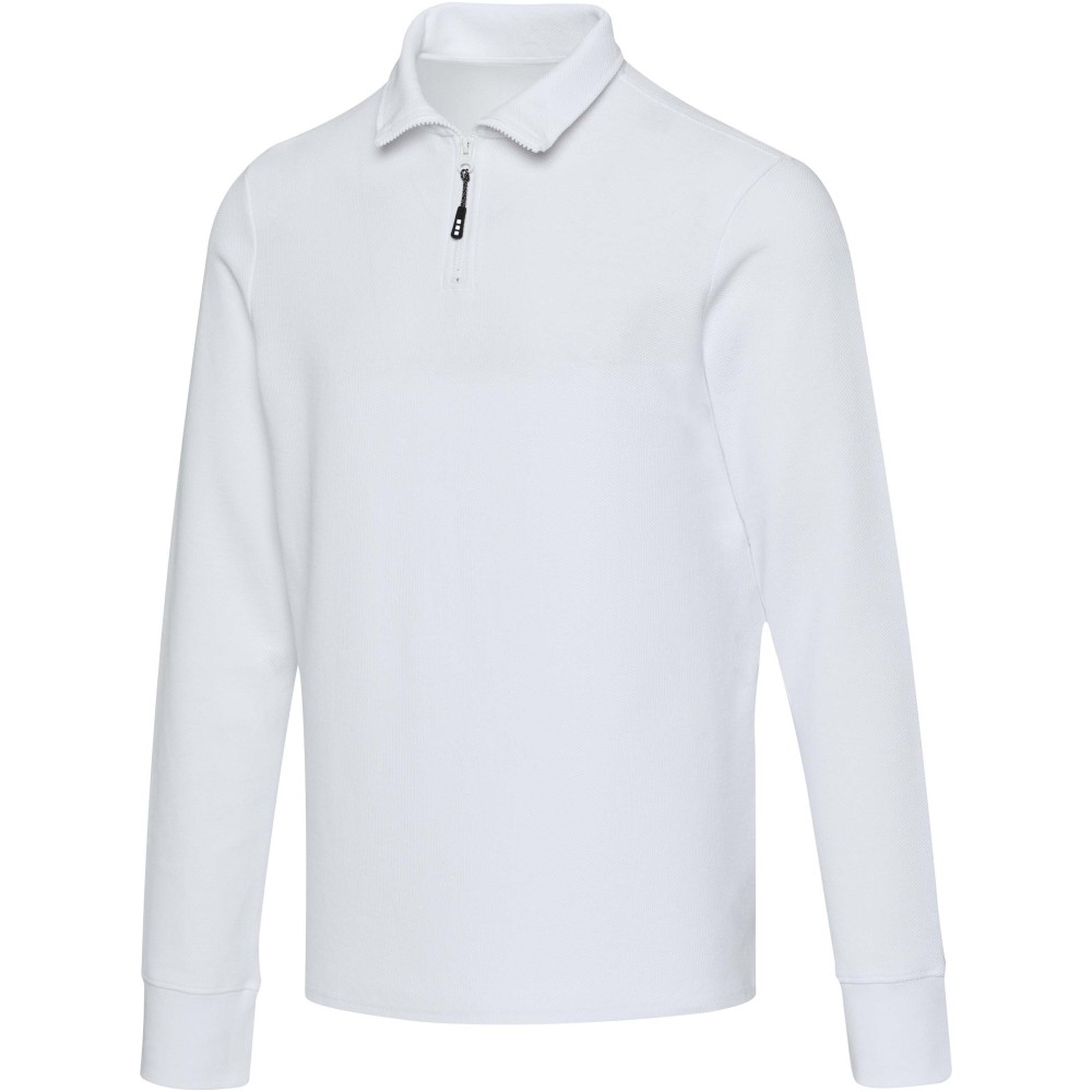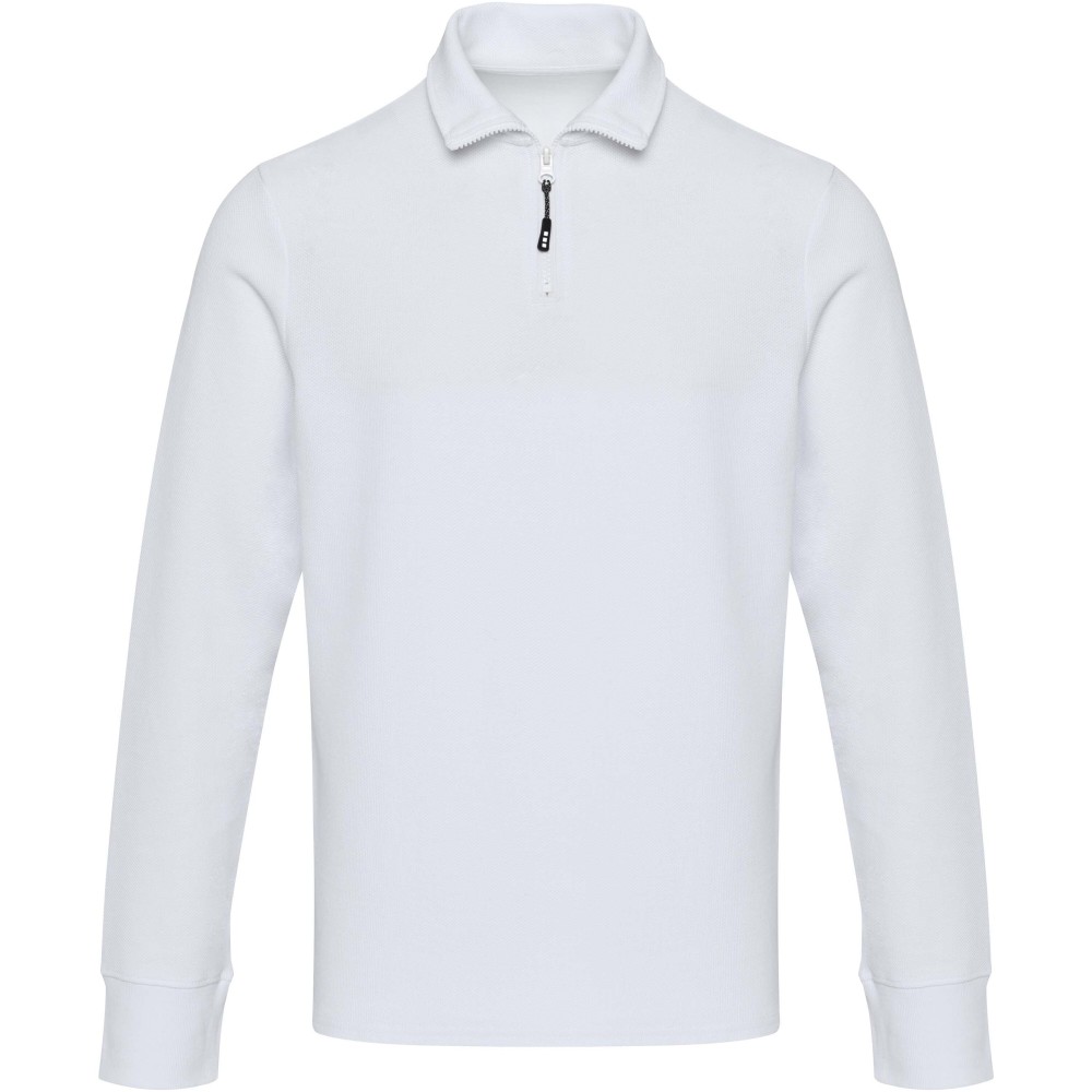 A Zeus uniszex hosszúujjú, félcipzáras felső egész évben kényelmes viseletet biztosít. Anyaga piqué kötésű, amely kellemes tapintású és tartós kialakítású. A kidolgozást finom pick stitch varrásrészletek egészítik ki, az azonos alapanyagból készült nyakszalag-erősítés pedig hozzájárul a hosszabb élettartamhoz. Az oldalsó sliccek, szintén saját anyagból készült betétekkel, nagyobb mozgásszabadságot tesznek lehetővé. A hőtranszferes márkajelzés cimkementes komfortot nyújt. A termék AWARE nyomonkövetesi technológiával van ellátva, amely egy digitális termékútlevelet tartalmaz, igy biztosítva az átláthatóságot és a fenntarthatósági jellemzők bemutatását. 100% pamut, 245 g/m2.
