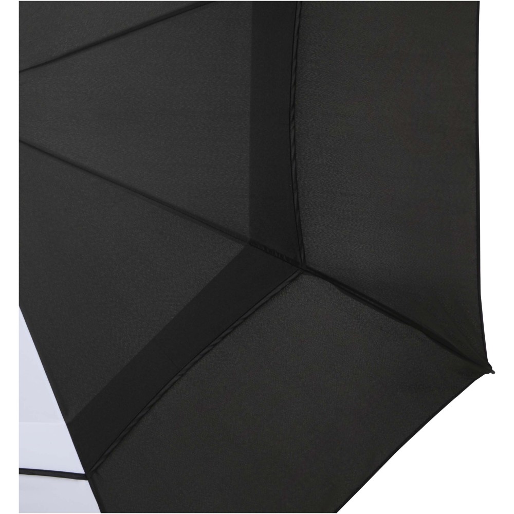 A Jeff szélálló golfesernyő tágas, 55 hüvelykes poliészter ernyőrésszel rendelkezik, amely kényelmesen megvéd több személyt is az időjárástól. Erős üvegszálas szára és váza kiváló rugalmasságot biztosít, így jól ellenáll az erős szélnek. Praktikus műanyag fogantyúja automata nyitógombbal van ellátva, ami gyors és egyszerű használatot tesz lehetővé. Kontrasztos ernyőpaneljei remek lehetőséget kínálnak feltűnő, látványos emblémázásra, így ideális választás rendezvényekhez, promóciókhoz vagy mindennapi használatra.