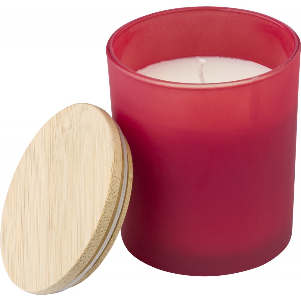 Üveggyertya növényi alapú viasszal és bambusz fedővel. A gyertya főleg növényi alapú viaszt (karnaubaviaszt) tartalmaz, égési ideje körülbelül 46 óra. Négy illat az üveg színétől függően: fahéj (piros), vanília (fehér), szantálfa (fekete) és jázmin (zöld). Egyenként, fehér papírpalástba csomagolva.