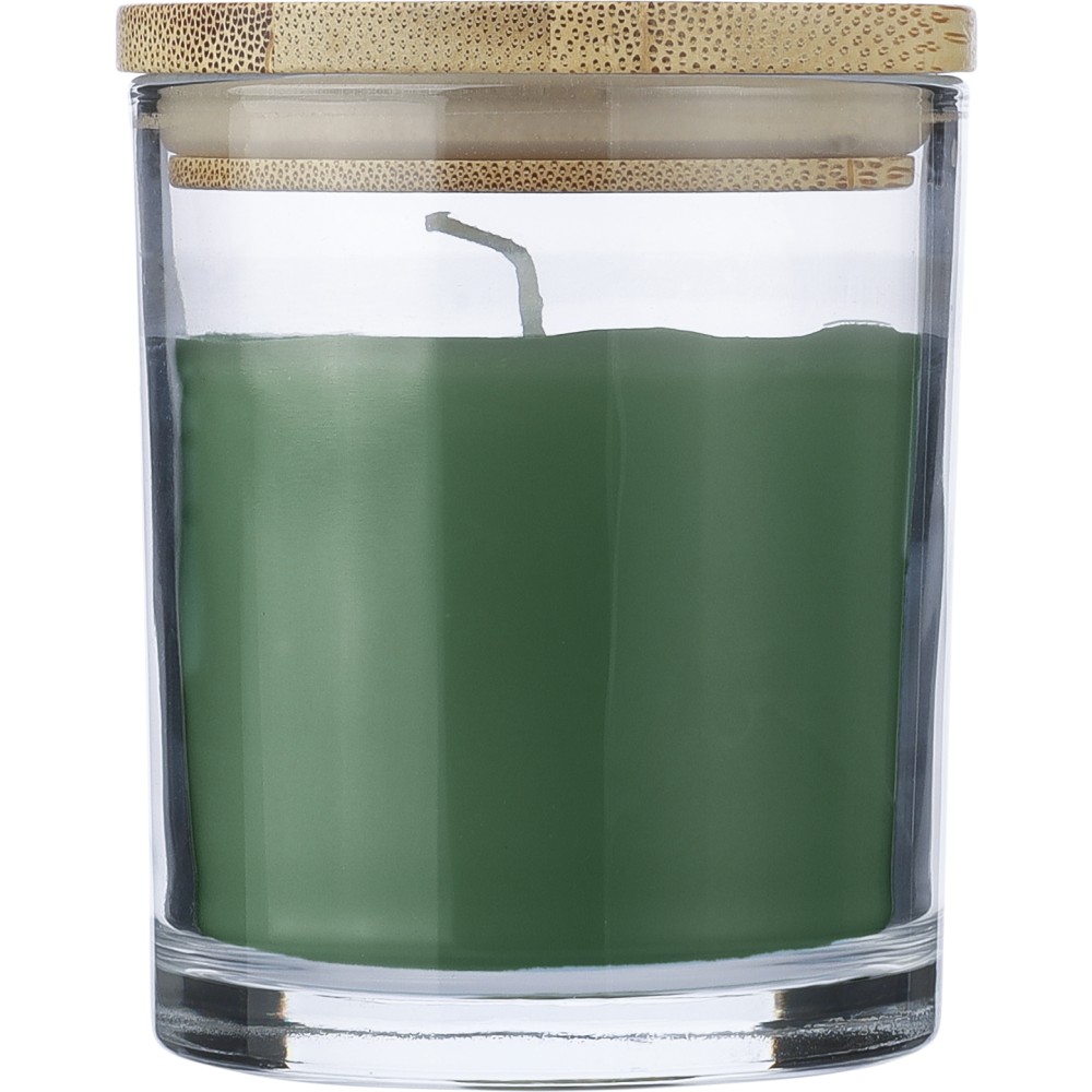 Illatgyertya üveg tartóban, zöld