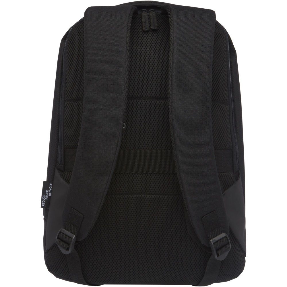Egy nagy főrekesz szervezőpanellel, párnázott 15 laptoptok és a 2 RFID védelemmel ellátott zseb. USB port jobb oldalon a táskában lévő töltőhöz való csatlakozáshoz. Párnázott vállpántok, rejtett cipzáras zseb. Körülbelül 15 műanyag palackot újrahasznosításával készült. 600D poliészter.