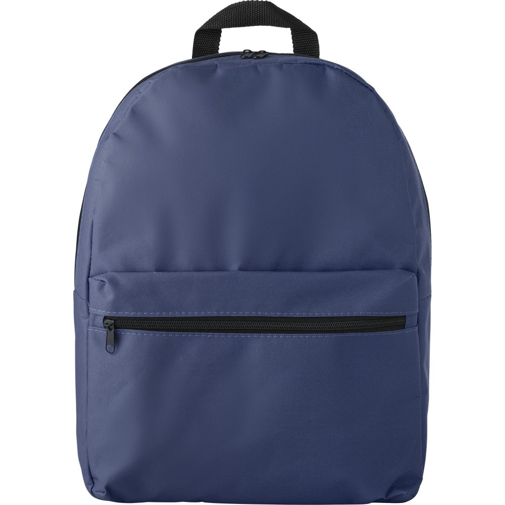 Hátizsák cipzáros elsőzsebbel, állítható, párnázott vállpánttal. 600D poliészter.