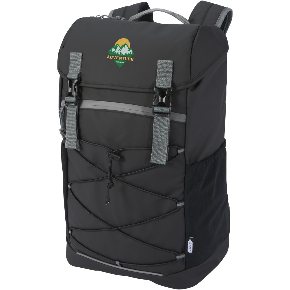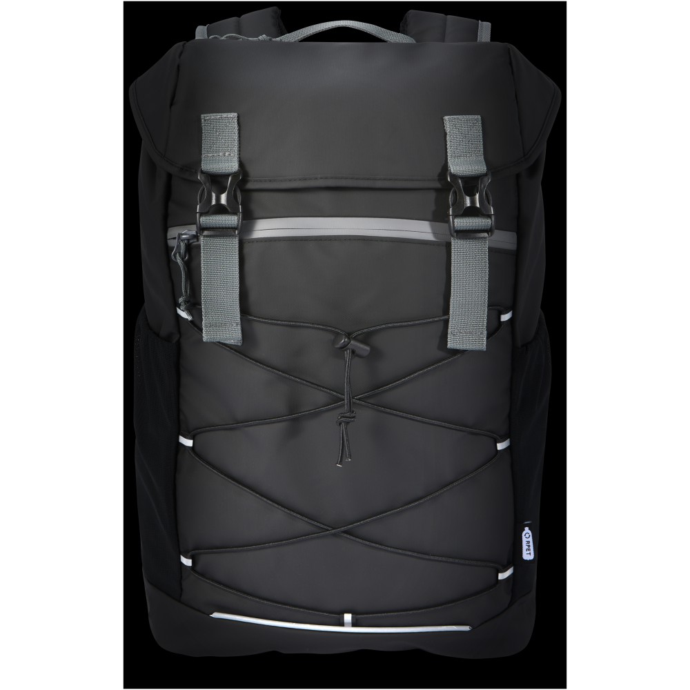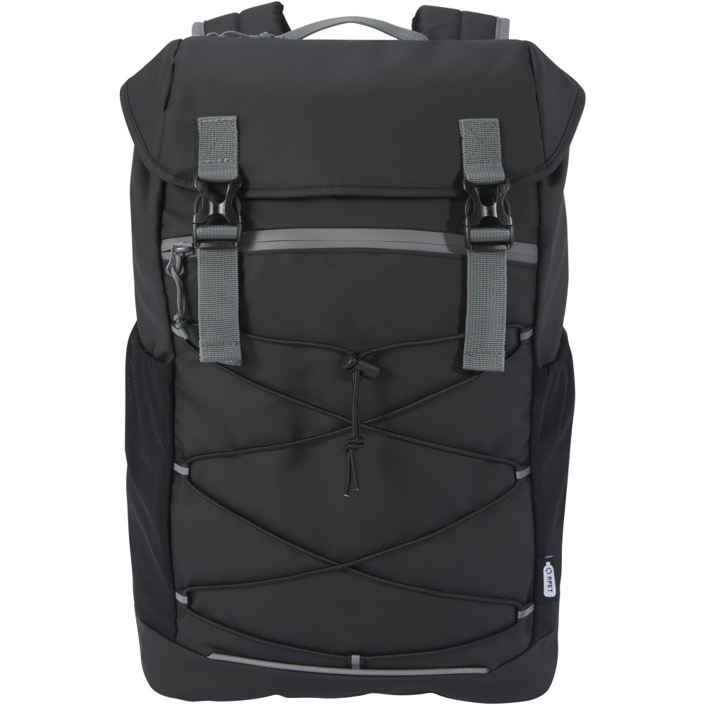 Vízálló laptop hátizsák GRS tanúsítvánnyal rendelkező újrahasznosított anyagokból, beleértve a cipzárakat is. Tágas, 15,6 -os laptoprekesszel rendelkezik, zsinórral és állítható csatokkal, hogy maximalizálja a tárolóhelyet a fedlap alatt. Ez a hátizsák több zsebbel rendelkezik, köztük egy cipzáras elülső zsebbel, rugalmas húzózsinórral a tároláshoz és rendszerezéshez, valamint fényvisszaverő csíkokkal a láthatóság érdekében. A formázott és párnázott hátlapnak és az állítható mellkaspántnak köszönhetően még teljes terhelés esetén is kényelmesen hordozható. A GRS újrahasznosított anyagai közé tartozik a főszövet, a bélés, a hevederek és a cipzárak. Űrtartalom: 23 liter. PVC-mentes.
