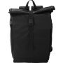 Roll-top hátizsák. Két cipzáras zseb az oldalán, egy nagy rekesz. Tépőzárral és csattal záródik. 600D RPET poliészter.