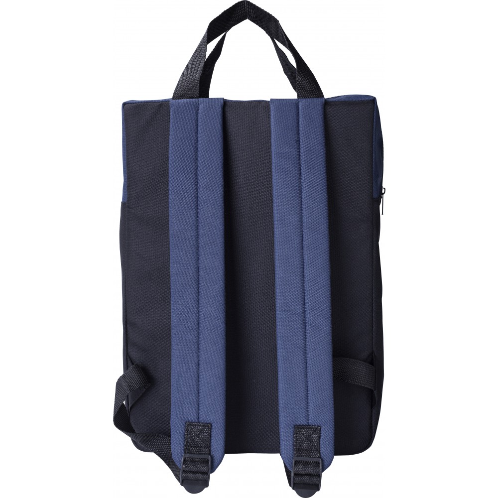 Hátizsák egy nagy rekesszel és egy cipzáras első zsebbel. Felső oldalán fülek. 600D RPET poliészter.