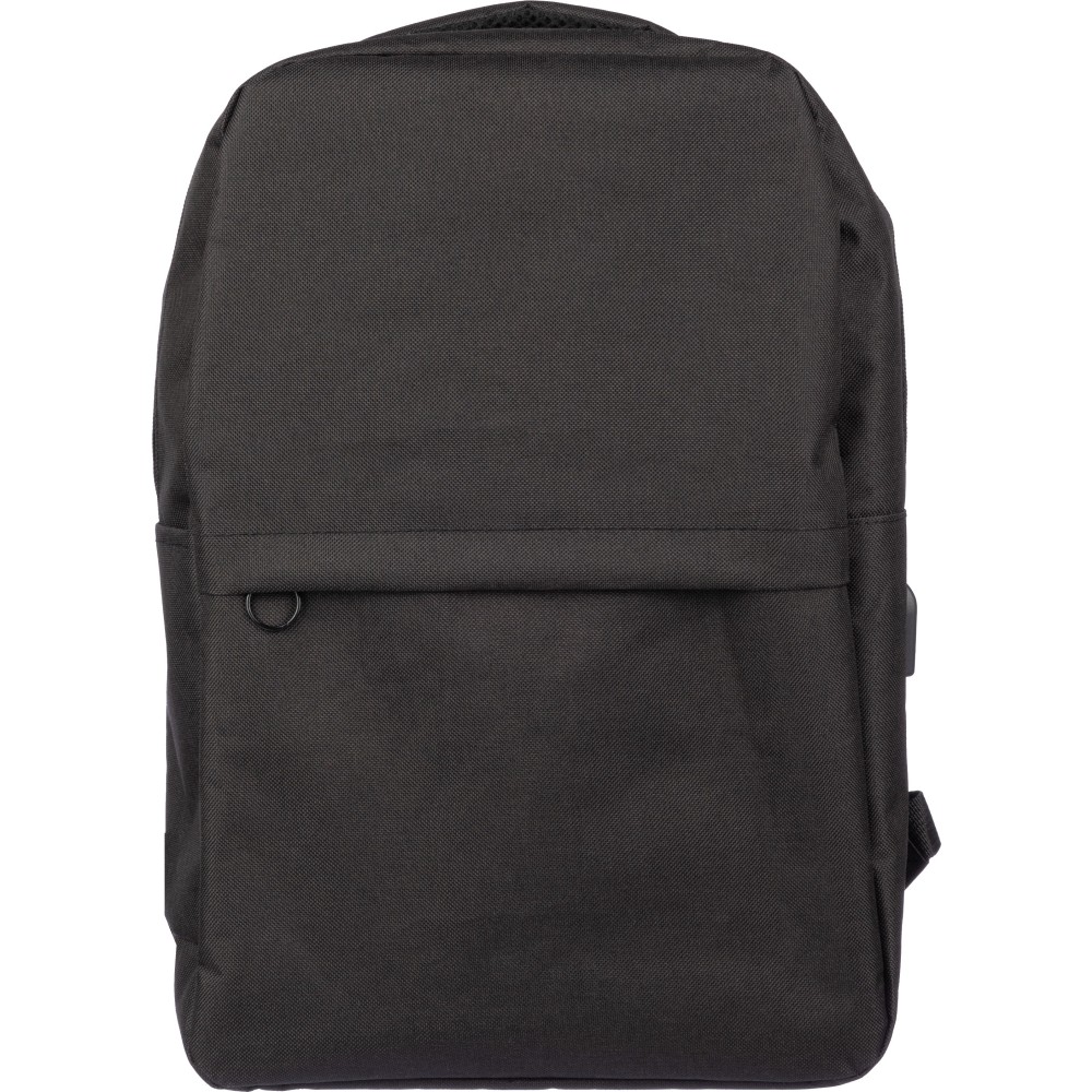 RPET 600D hátizsák USB port kimenettel (belül USB kábellel) nagy cipzáras rekesszel a felső oldalon és cipzáras zsebbel az elején. Belül van egy rekesz a 10 incses készülék és egy a 15 incses készülék számára. Állítható fogantyúkkal.