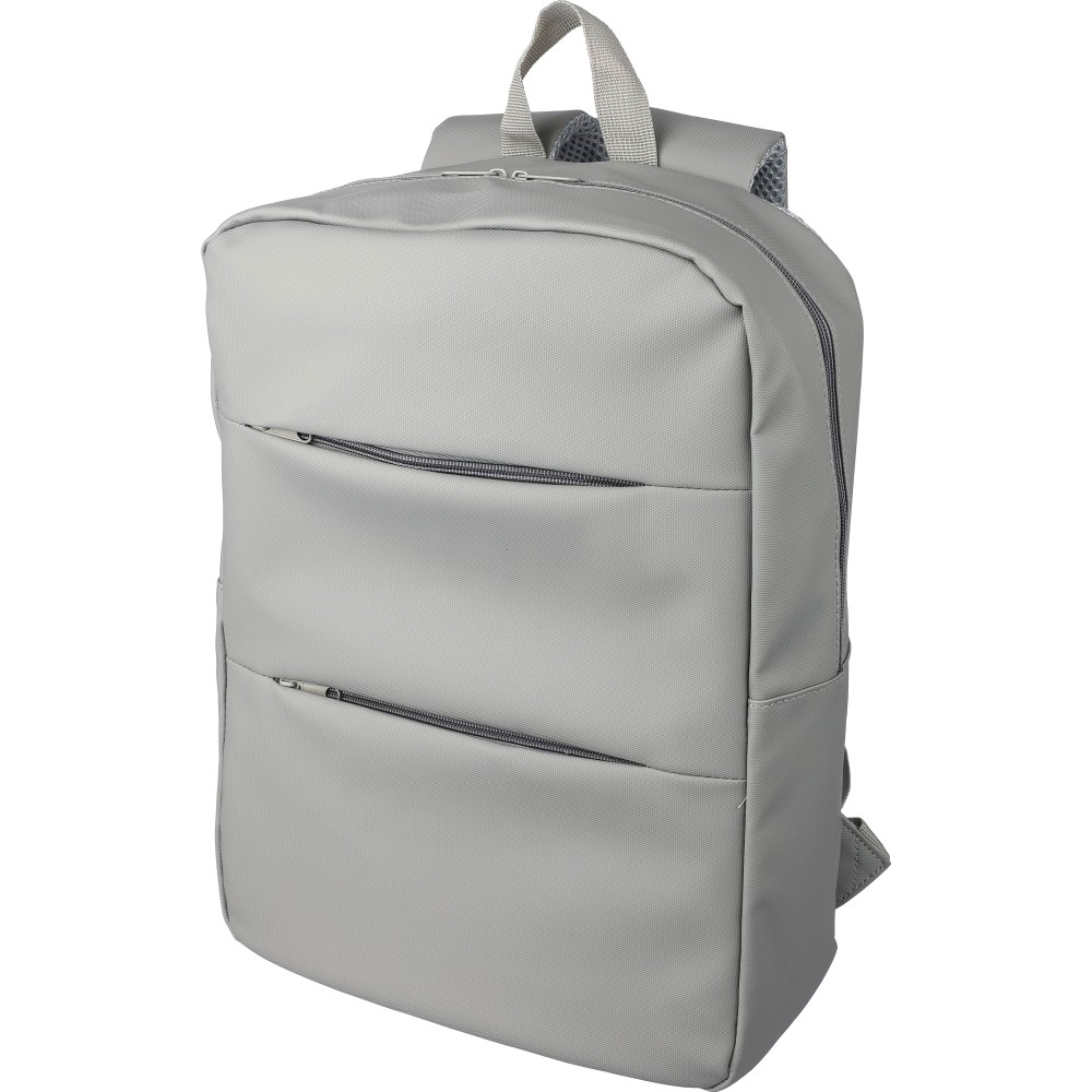 Laptop hátizsák 15 -es készülékhez. Két cipzáras elülső zsebbel, egy nagy cipzáras rekesszel és tépőzáras laptoprésszel, valamint több belső zsebbel. Szellőző, párnázott hátoldallal, trolifogantyúval és állítható vállpántokkal. Vízlepergető. Anyaga: PU.