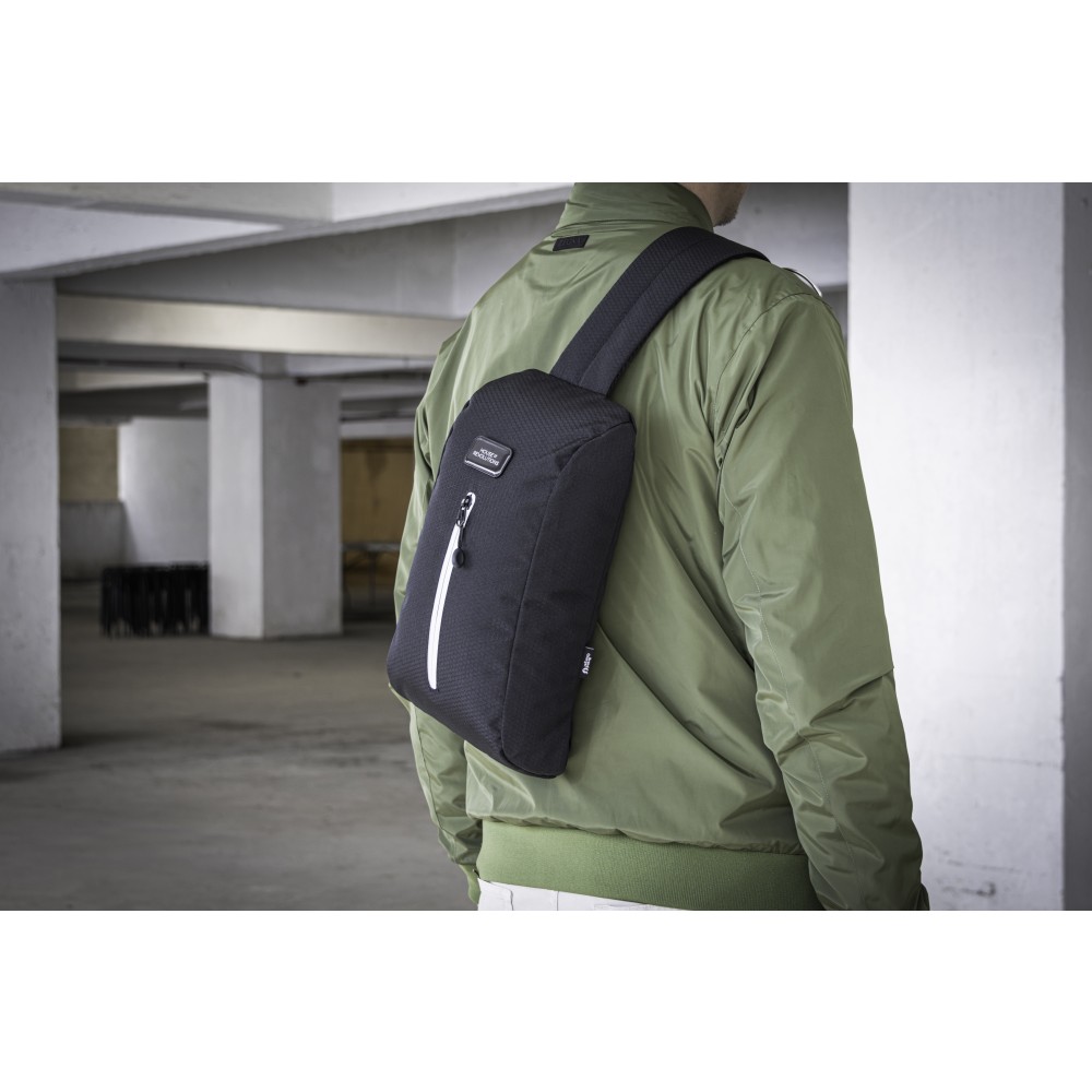 A Sling hátizsák újrahasznosított PET-palackokból készült, és városi és szabadtéri kalandokhoz használható. Kompakt mérete ellenére bőséges helyet kínál a felfedezésekkel teli naphoz szükséges dolgok számára, akár túrázásról, akár hétköznapi sétáról van szó. Ergonomikus, keresztbe vethető, légáteresztő hálópántja gondoskodik a kényelemről. Zsebbel is rendelkezik a telefon vagy a kulacs számára.Önmagába feltekerve párnaként is használahtó. A vízálló anyag, a lopásgátló borítású cipzár és a fényvisszaverő részletek védelmet és biztonságot nyújtanak útközben, így sokoldalú és környezetbarát választás.